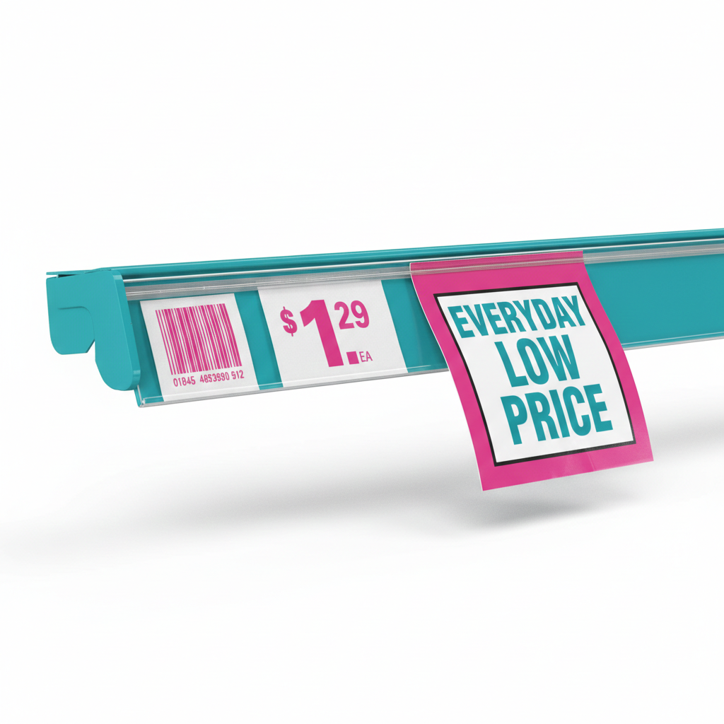 Fits standard 48″ shelves. Cut to size for smaller gondola units.
