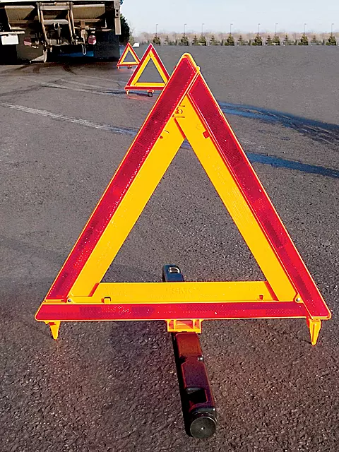 Three 17″ warning triangles alert drivers to avoid disabled vehicles and roadside emergencies.