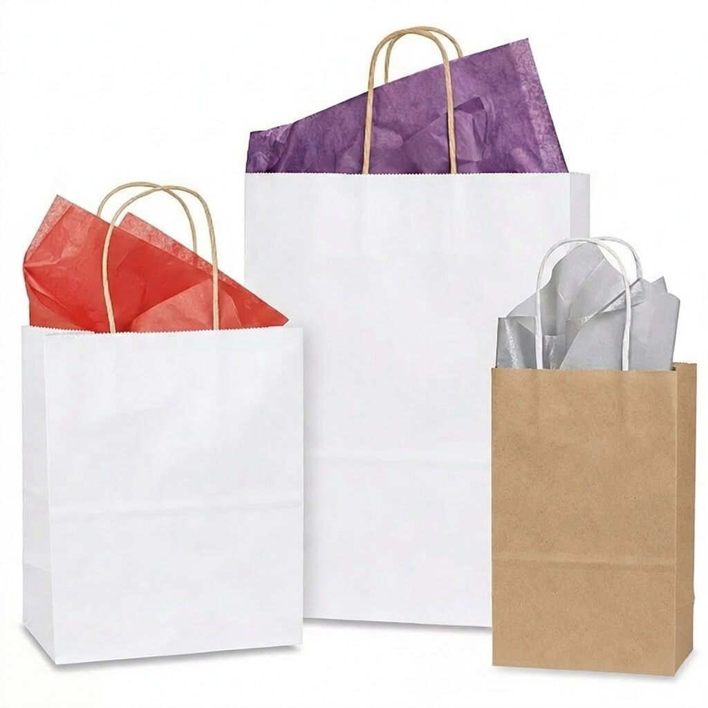 Strong twisted paper handles make purchases easy to carry.