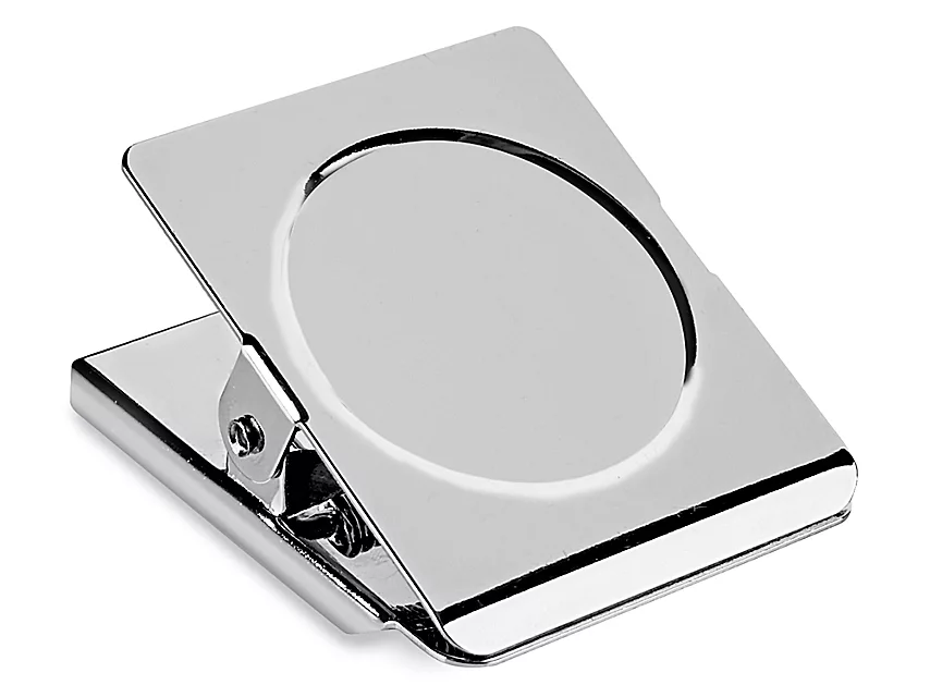 Hang documents on steel filing cabinets or warehouse racking. Strong square magnet. Chrome finish. Heavy-duty spring clip.