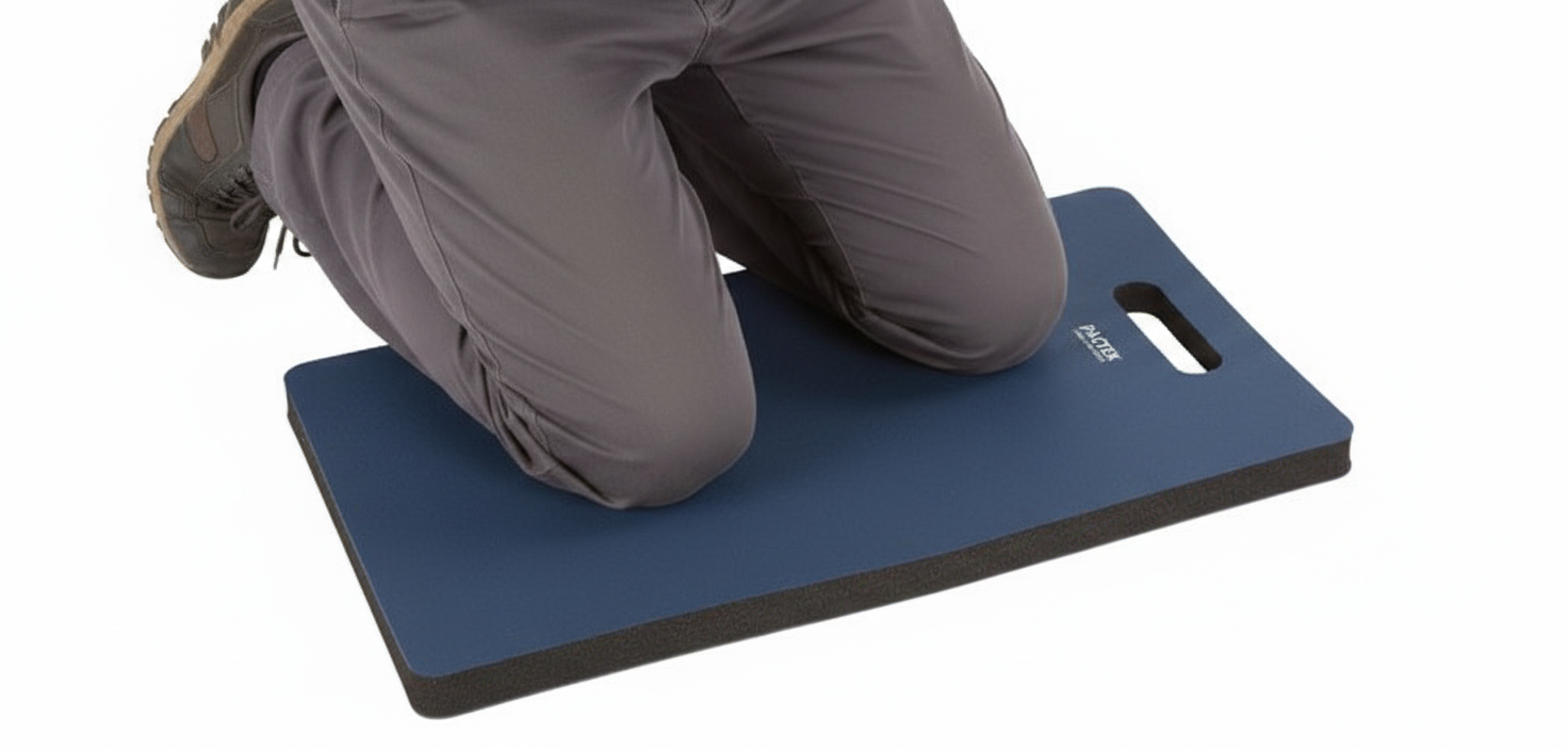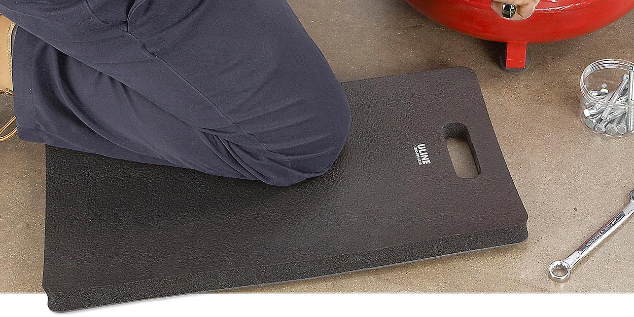 Knee saver! Mechanics, maintenance and groundskeepers love them! Provides ultimate comfort on any surface. Cushy 1″ thick nitrile/PVC foam with handle. Resists industrial chemicals, grease and oil.