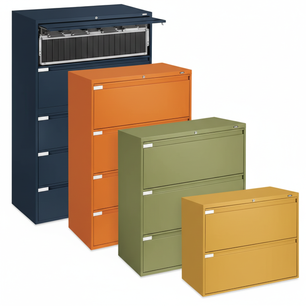5 Drawer Lateral File Cabinet – Top drawer has retractable door and rollout shelf.