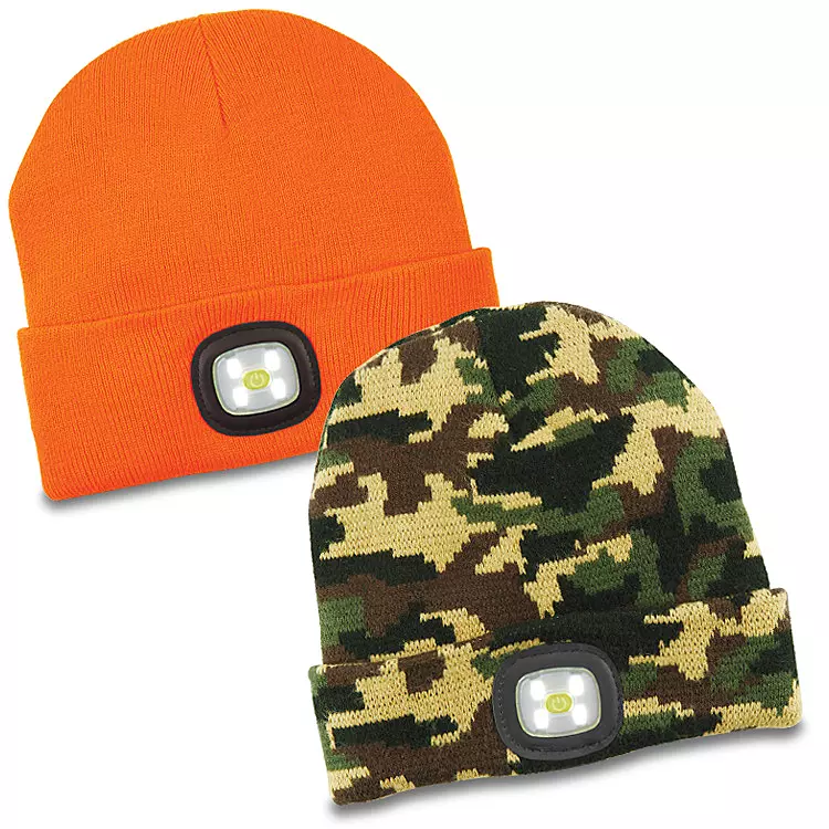 No flashlight needed! Hands-free light for walking the dog at night. Rechargeable 4-hour battery. Pop out the light and plug it into your USB port. Machine washable. Polyester-acrylic blend.