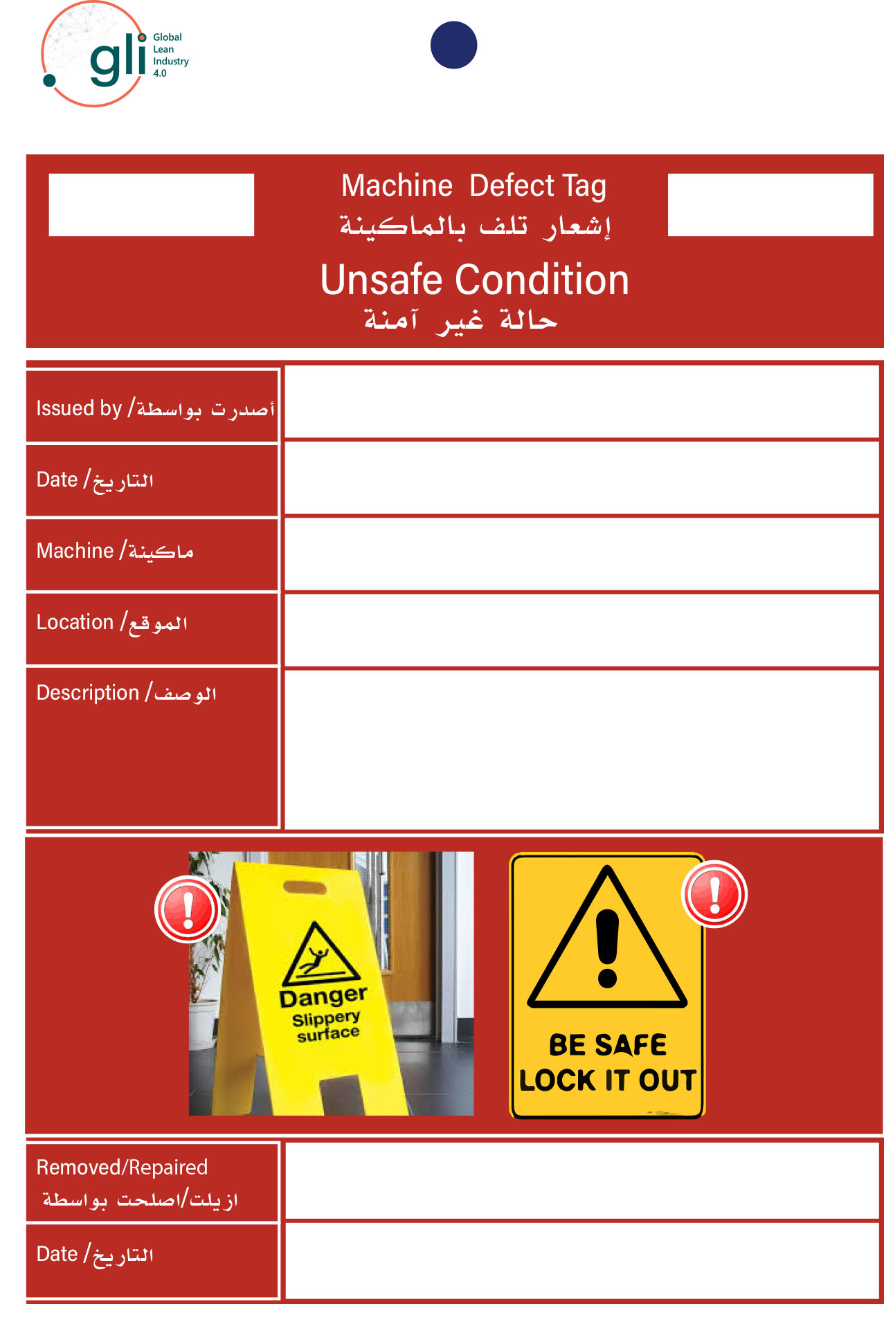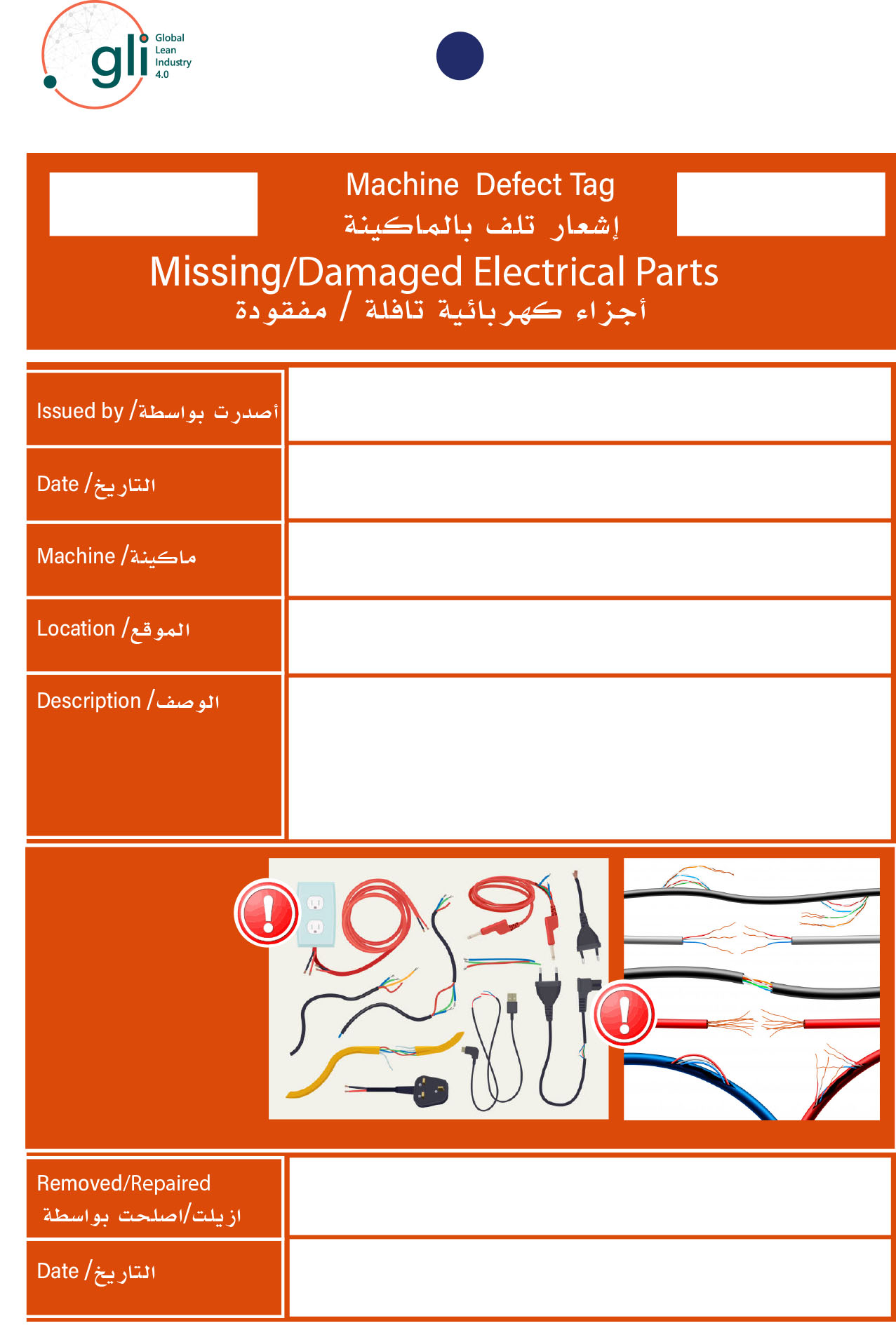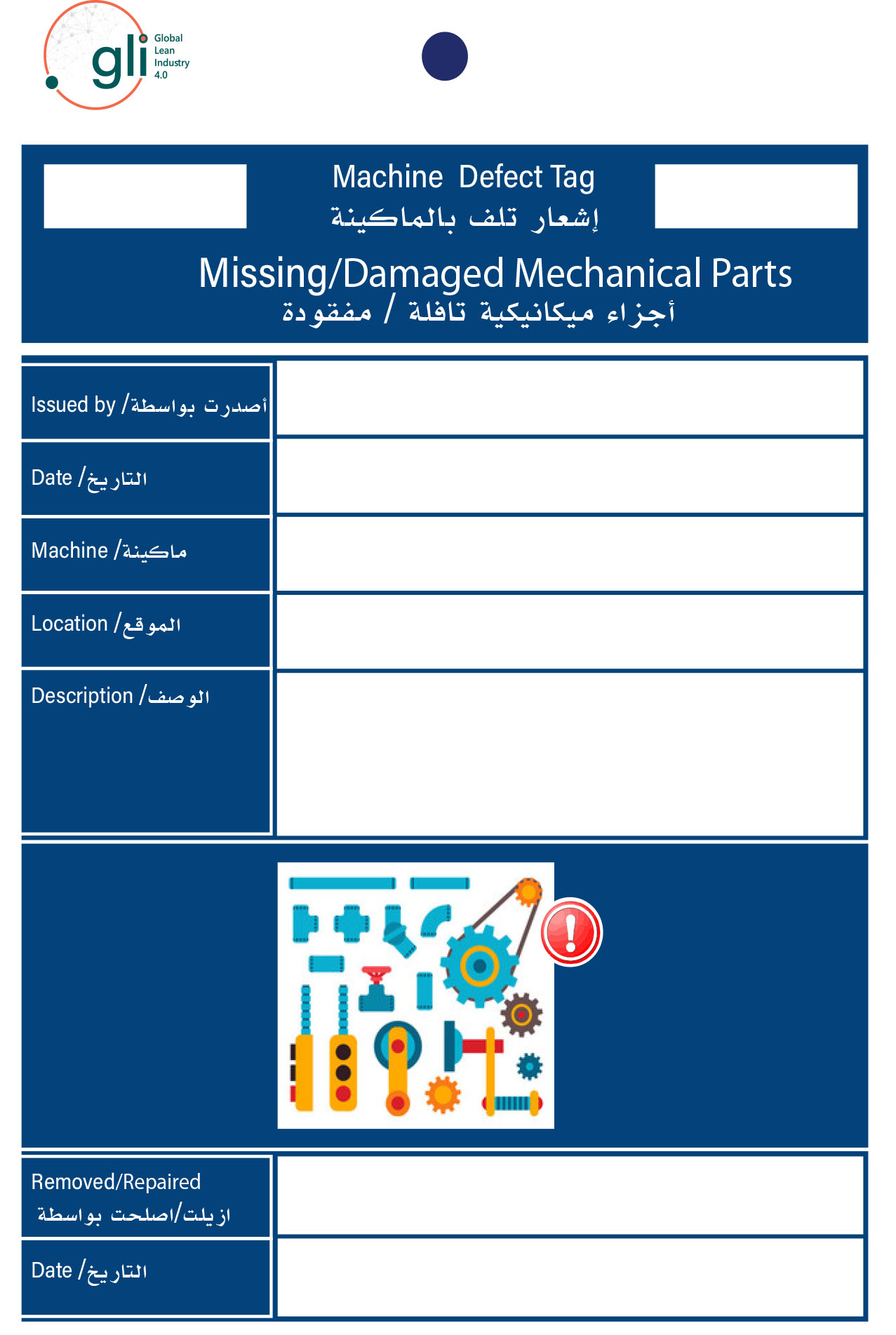 Machine Defect Tag/Sheet that summarizes any technical defect in a machine.