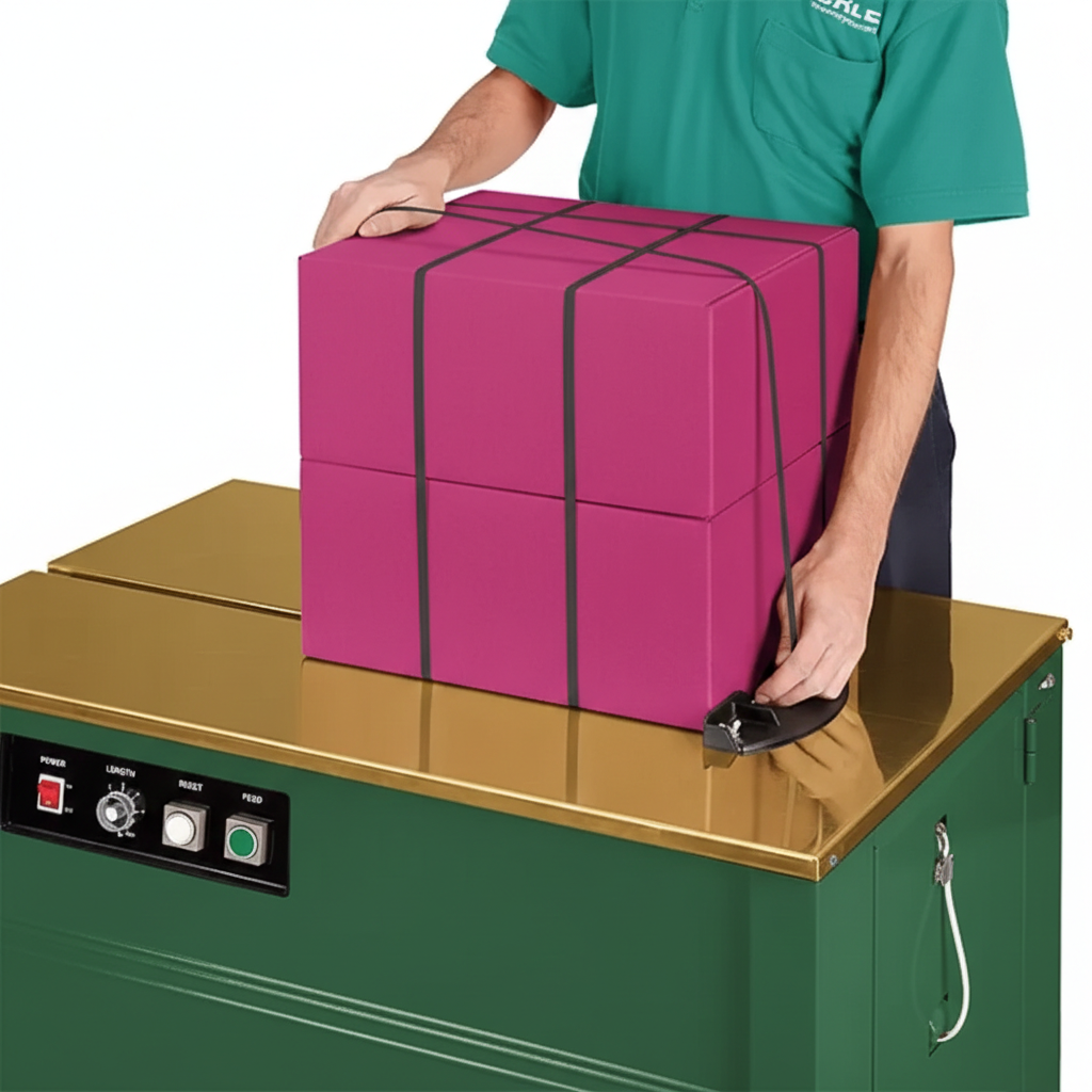 High quality polypropylene strapping works with all tabletop strapping machines. UPSable. Embossed surface. S-12823 – Smooth surface. Polypropylene Strapping Machine available.