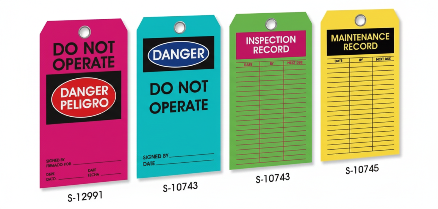 Keep maintenance and service records on your warehouse machinery. Heavy-duty 15 mil vinyl. Dirt, grease and moisture resistant. 3/8″ metal eyelet – Printing on one side. Includes 8″ cable ties (S-1021 pkg. of 25).