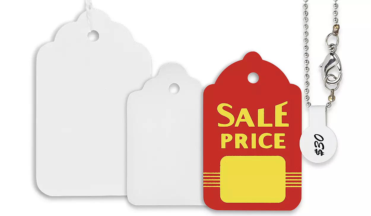 Pre-strung tags attach easily to merchandise.