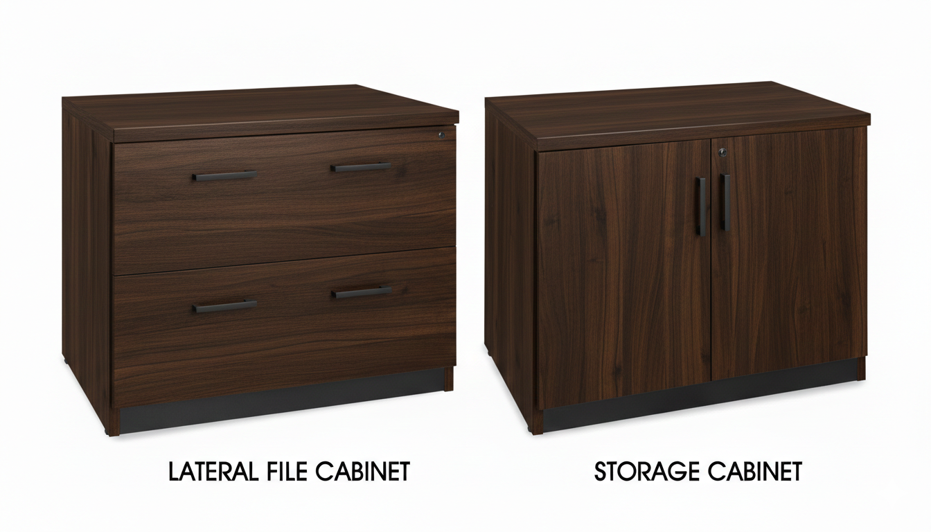 Lateral File Cabinet – 2 full extension drawers for letter or legal-size documents. Lockable.