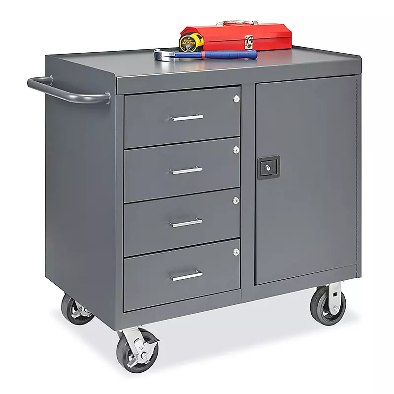 Heavy duty, all-welded steel construction. Convenient push handle.
