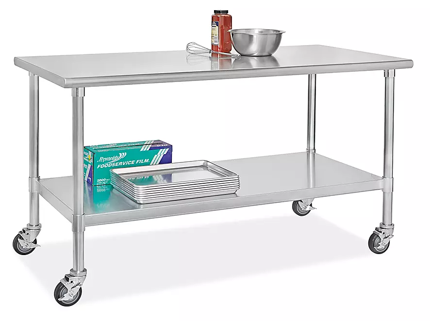 Adjustable bottom shelf. 4″ polyurethane locking swivel casters.