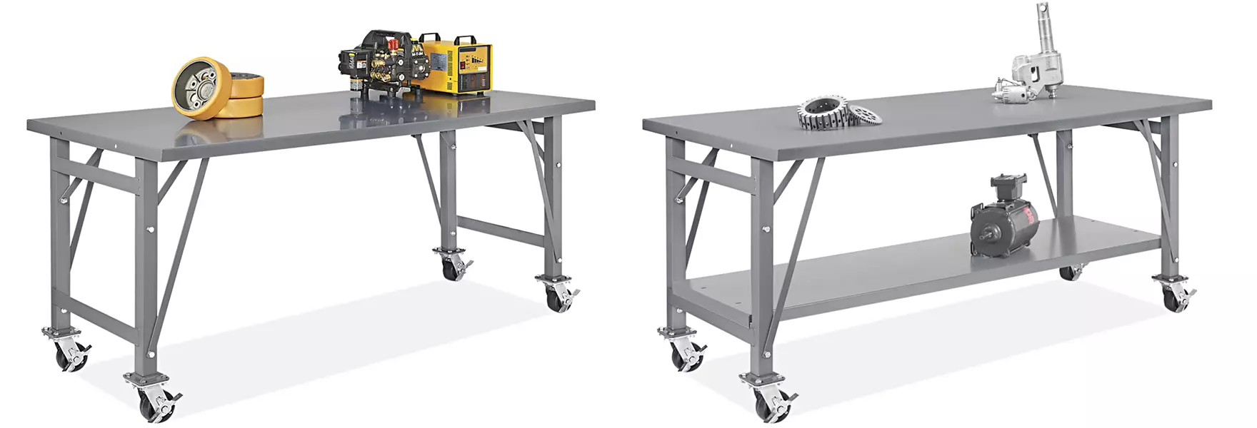 With Bottom Shelf – Holds up to 450 lbs. of parts and supplies.