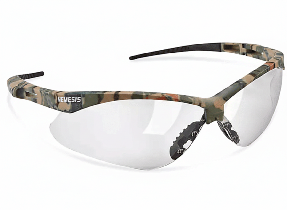 Sporty design for outdoor work. Soft-touch temples. Includes adjustable nylon strap. Anti-fog, anti-scratch lens. 99.9% UV protection.