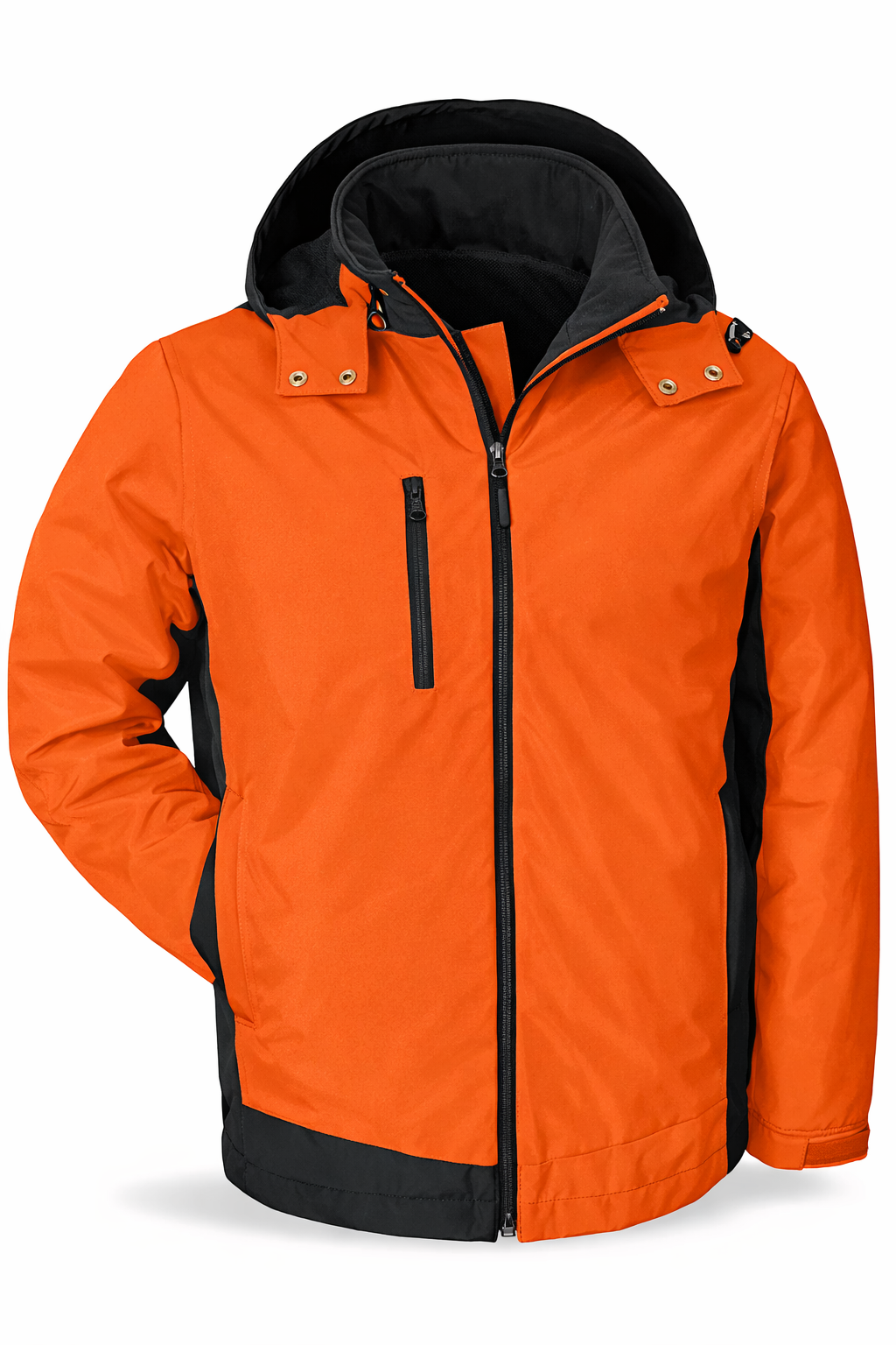 Soft and warm all-weather comfort that lasts the entire season. Microfleece lining with windproof exterior. Four zippered pockets. Removable hood. Machine washable.