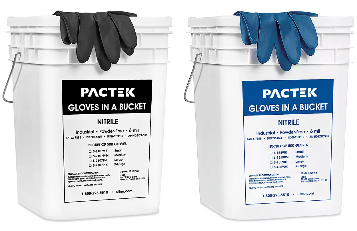 Portable, economical and convenient. Holds 5 times more gloves than a carton. Stackable, square container.