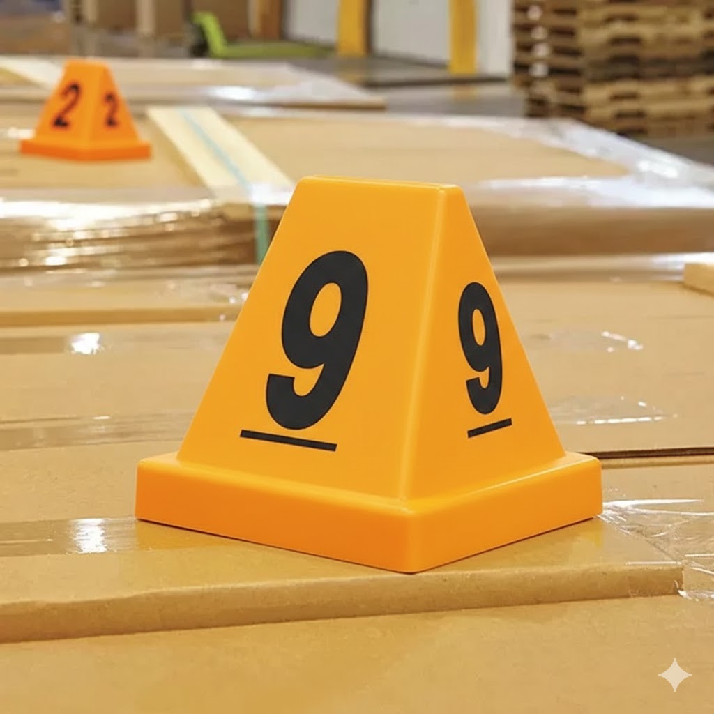 Identify outbound shipments and customer pickups. Numbered or lettered on 4 sides for 360° visibility. Durable, high-impact plastic. Nestable and stackable. S-21302 in Yellow.