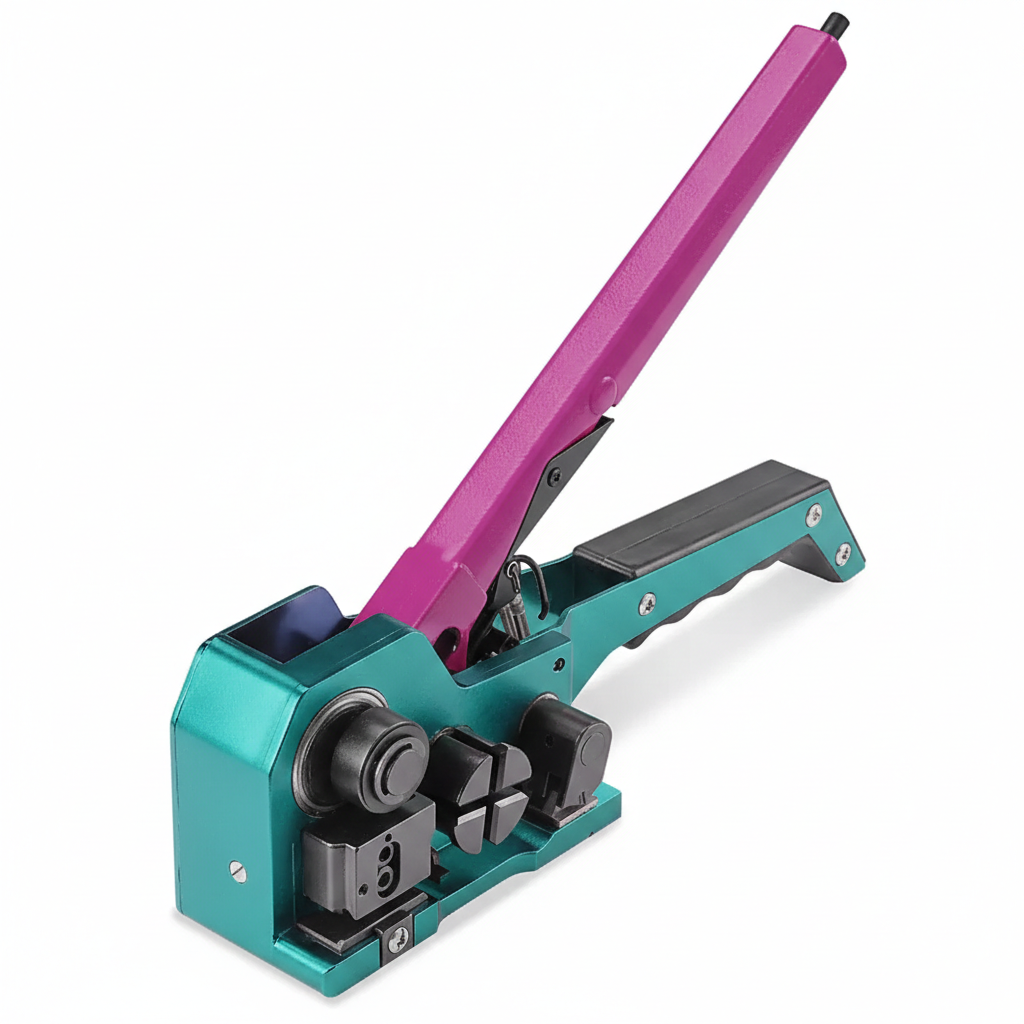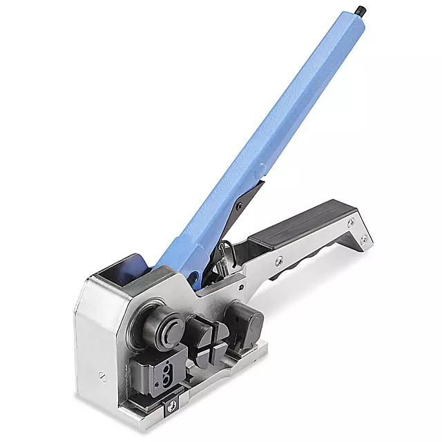 Lightweight and highly efficient. For polypropylene or polyester strapping. 3-in-1 Tool: Tensions, applies seals and cuts strapping. Use with Gripper Seals only.