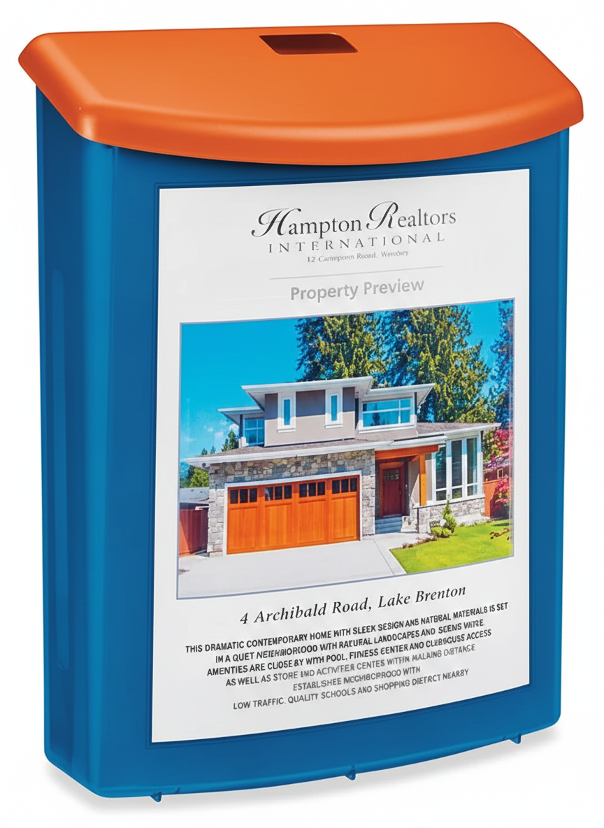 Frosted, attractive, long-lasting polystyrene. Self-closing lid keeps weather off. Holds 250 sheets up to 8 1/2 x 11″. Mounts on walls or posts with included hardware.