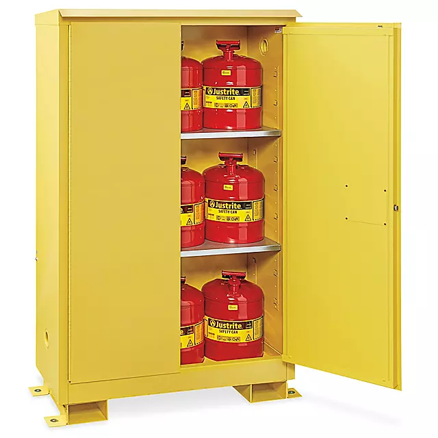 Weatherproof storage to keep aerosols, gasoline and flammable liquids safe.