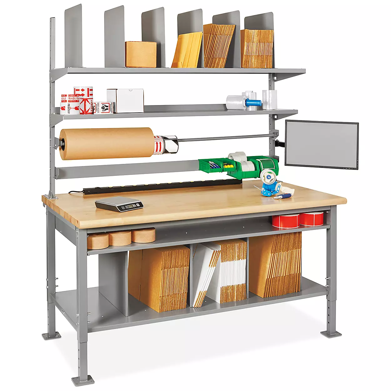 Starter Table – Includes table, full-depth bottom shelf with 4 dividers, open storage shelf and uprights.