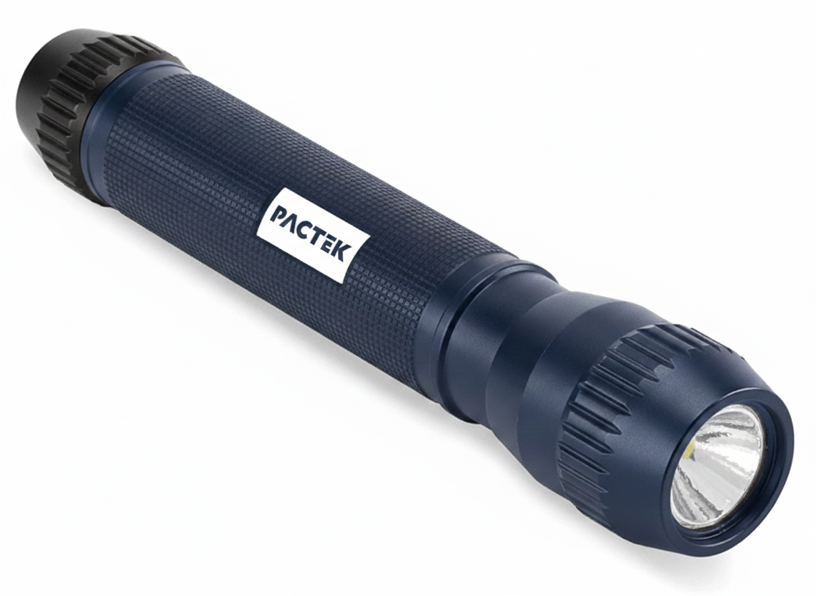 Intense LED beam for the job site, road or evening patrol. Fits in your pocket. For repairmen and inspectors. Requires 2 AA Batteries. Sold separately.
