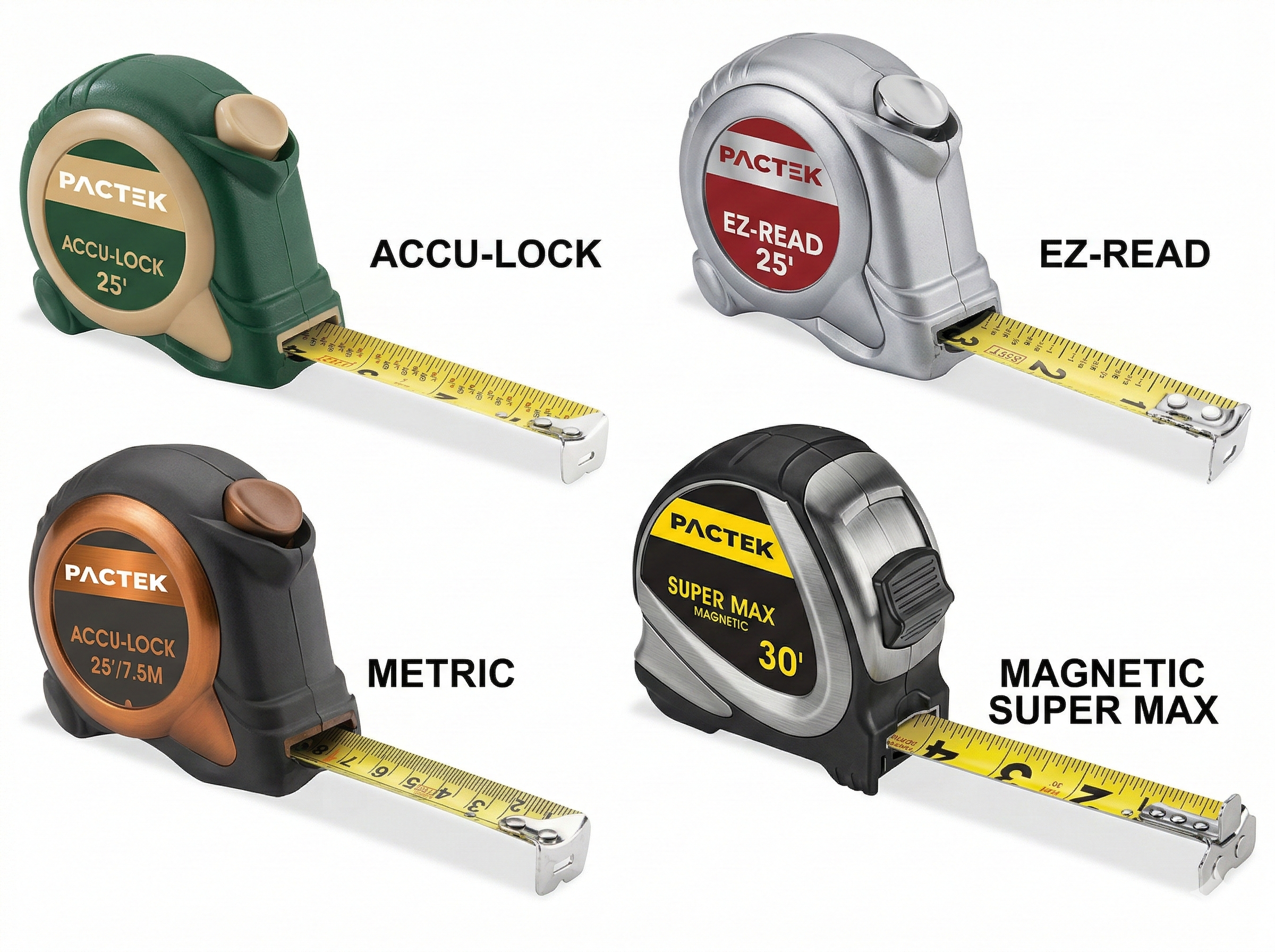 Super Max – Extra-wide tape gives 10′ standout reach. 2-sided numbering. Dual-end lock.