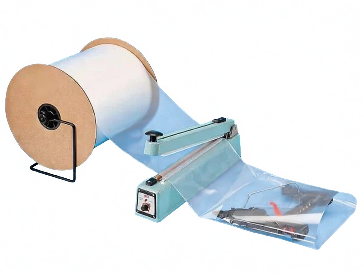 Use Poly Bag Sealers for a quick, easy seal on rolls up to 24″ wide. Sold separately.