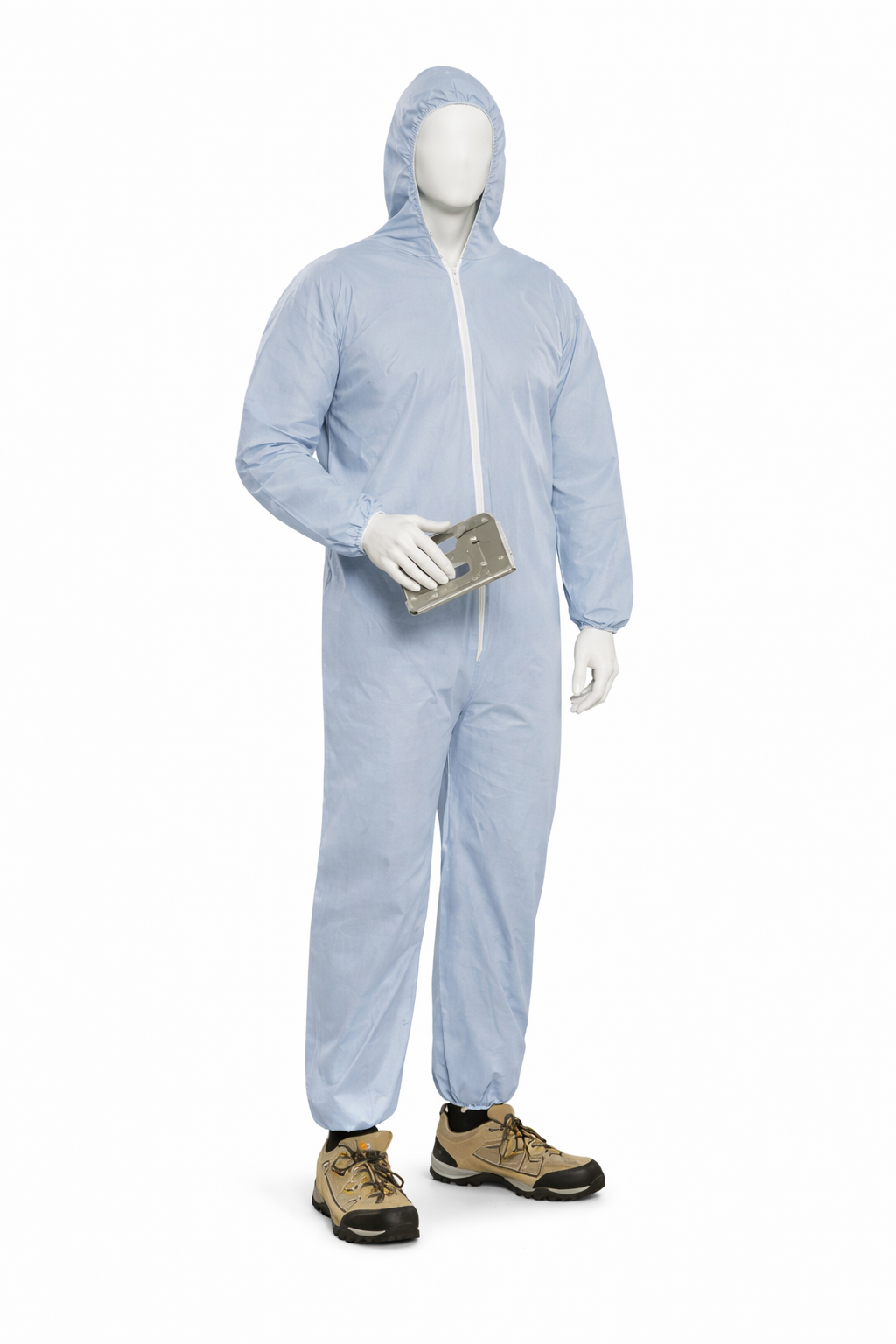 Zip front, elastic wrists and ankles.