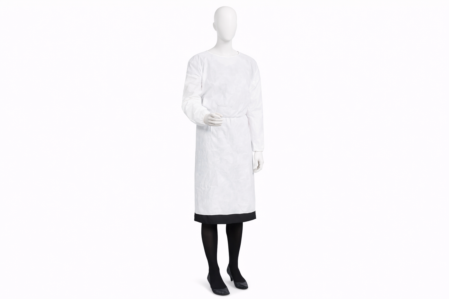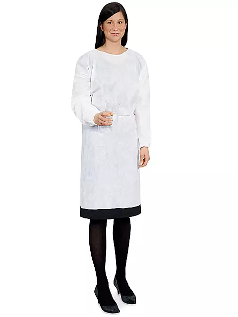 Breathable polypropylene material provides a lightweight protective barrier. Polycoated for light splash protection.