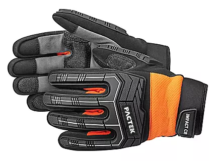 Your favorite Pactek gloves now with cut protection. For masonry, drilling and demolition. Absorbs shock. Padded palm reduces vibrations. HPPE cut resistant liner with back-of-hand protection. Touch screen compatible.