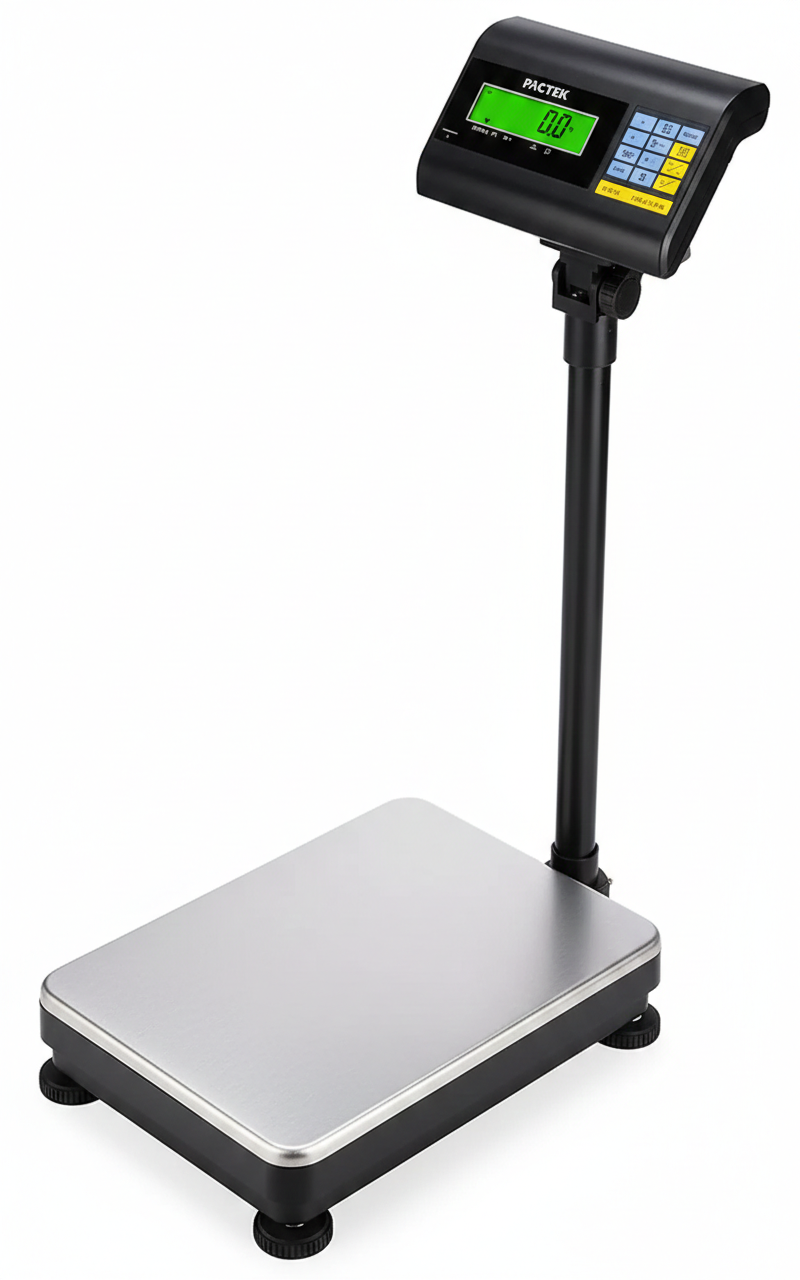 Large, industrial size platform. LB/KG convertible. Auto zero tracking. Overload indicator. Removable 26″ tower included. Calculates sample weight. Count up to 999,999 pieces. Powered by rechargeable battery or included AC adapter.