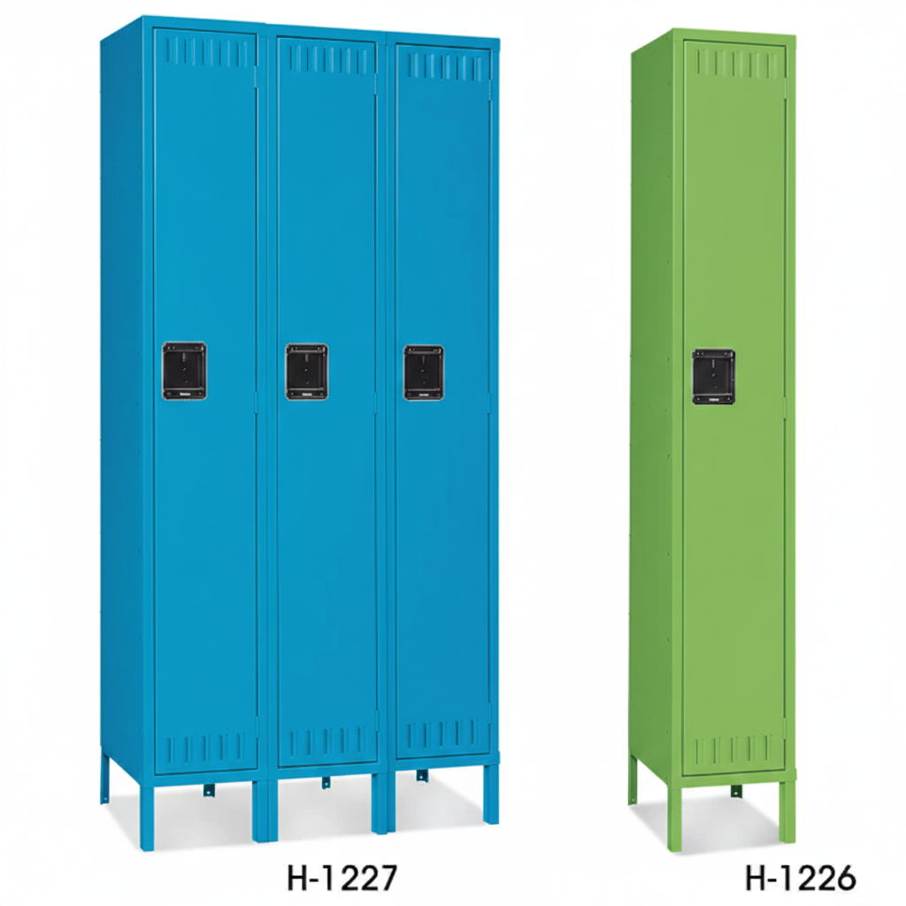 Includes shelf, 3 coat hooks and rod per locker.