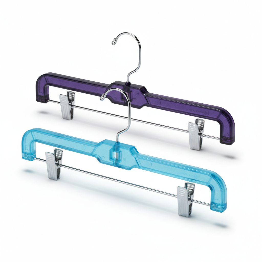 Pinch Clips – Easy-to-use with no-slip grip. Fixed hook. Black hanger is GS1 compliant. Adjustable Clips – Swivel hook with adjustable padded metal clips.