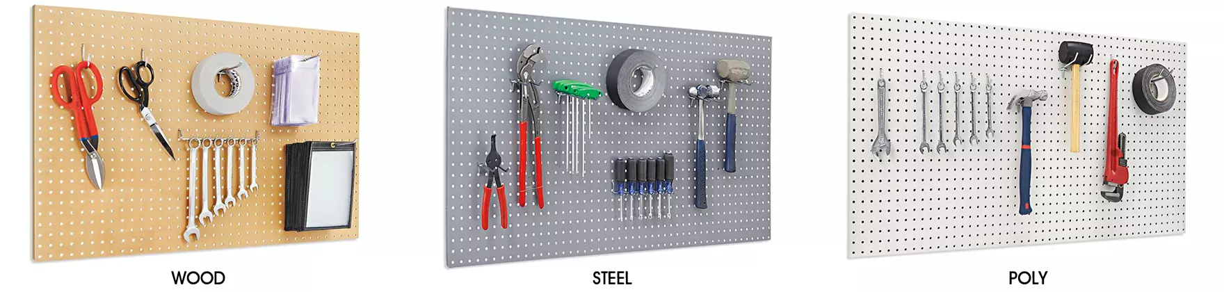 Steel Pegboard – Never cracks. Never breaks. Heavy-duty 20 gauge steel.