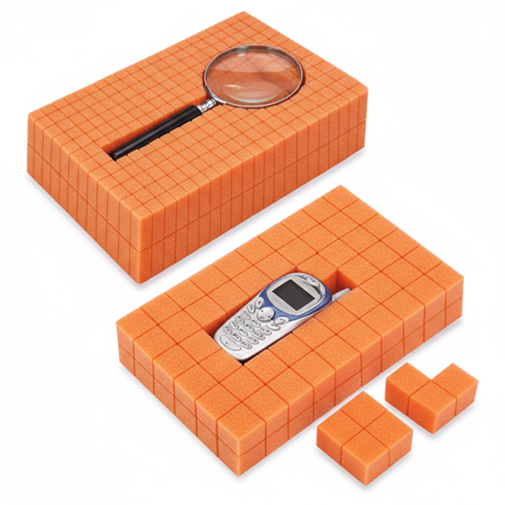 Create custom foam cushioning without cutting. Easily pull out perforated foam squares to match product’s shape. Charcoal soft urethane foam conforms to fragile and valuable items in all directions. Eliminate expensive die-cutting.