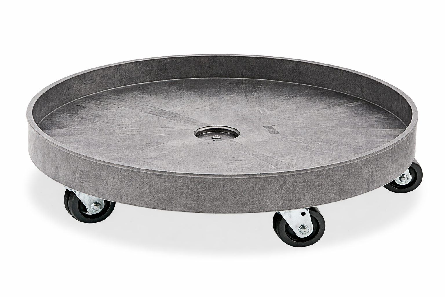 Move 55-gallon drums with ease. Resists rust, denting. Solid bottom contains spills. Pactek – Deep 2″ lip helps stabilize drum. Five 3 x 1¼” polyolefin swivel casters. Rubbermaid – 1⅞” lip. Five 3 x ¾” polypropylene swivel casters.