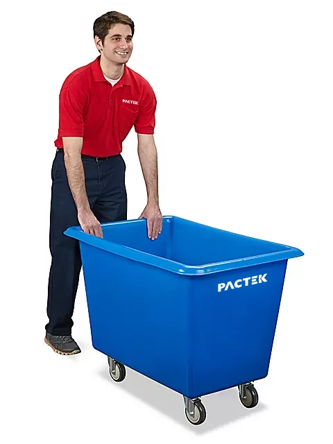 Transport wet laundry, bulk materials and trash in these sturdy, high-capacity trucks. Tough, seamless polyethylene is easy to clean. 4″ polyurethane swivel casters offer easy mobility. Galvanized steel base.