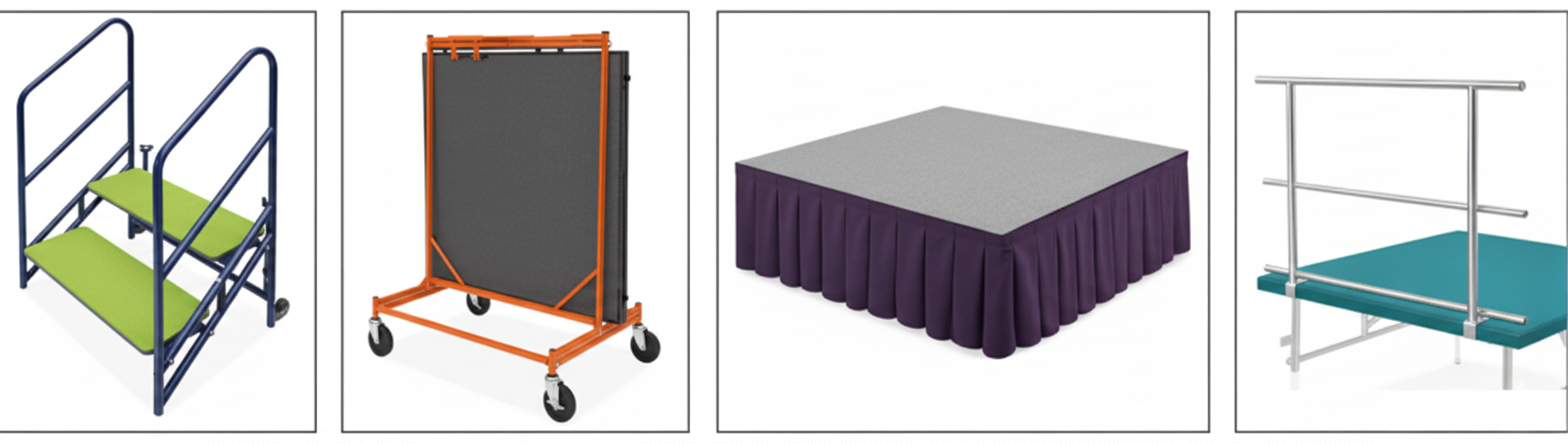 Dolly – Store and transport up to 6 stage platforms. 6″ casters.