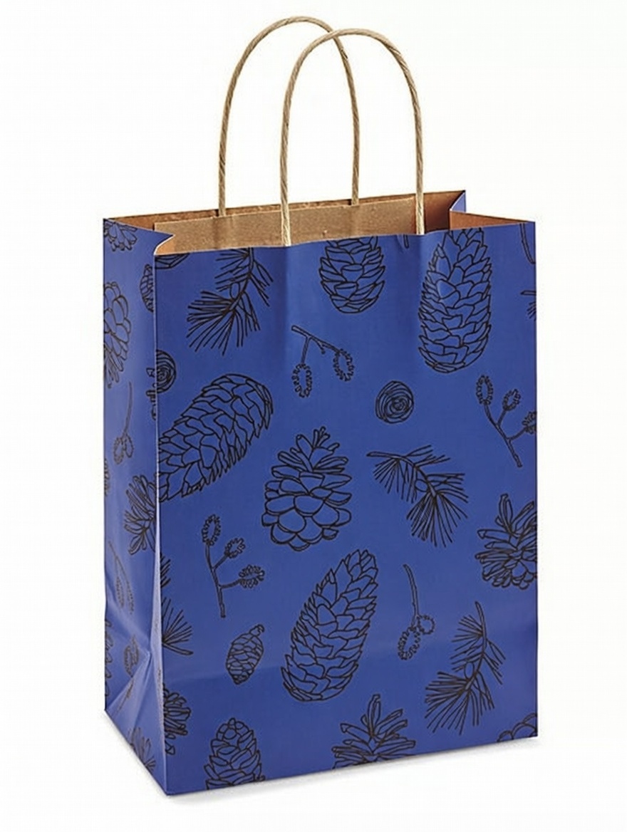 Printed Kraft Paper Shopping Bags – 8 x 4 1⁄2 x 10 1⁄4″, Cub, Pine Cones