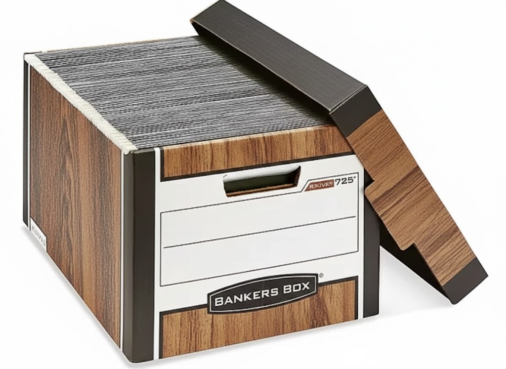 ugged construction stands up to heaviest use. 3 layers of corrugated on ends. 2 layers on sides and bottom. Fits letter and legal size. Stack on Record Storage Racks for neat, tidy storage.