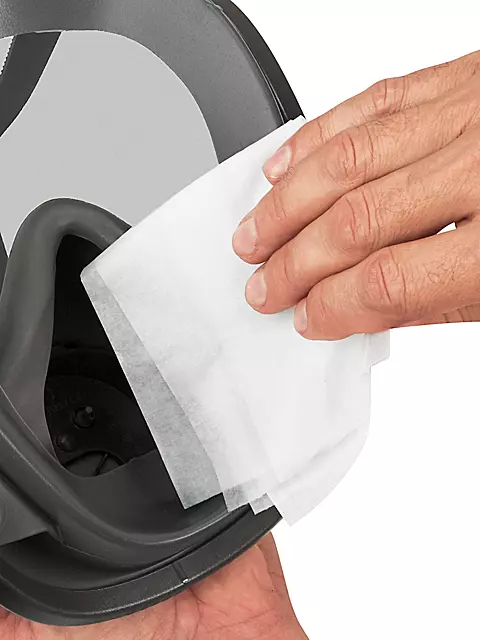 Clean reusable respirators between uses. Wipe away dust, dirt and sweat. Alcohol-free wipes won’t damage masks. Premoistened. Individually packaged. Safely cleans other reusable personal protective equipment. For use with all Reusable Respirators.