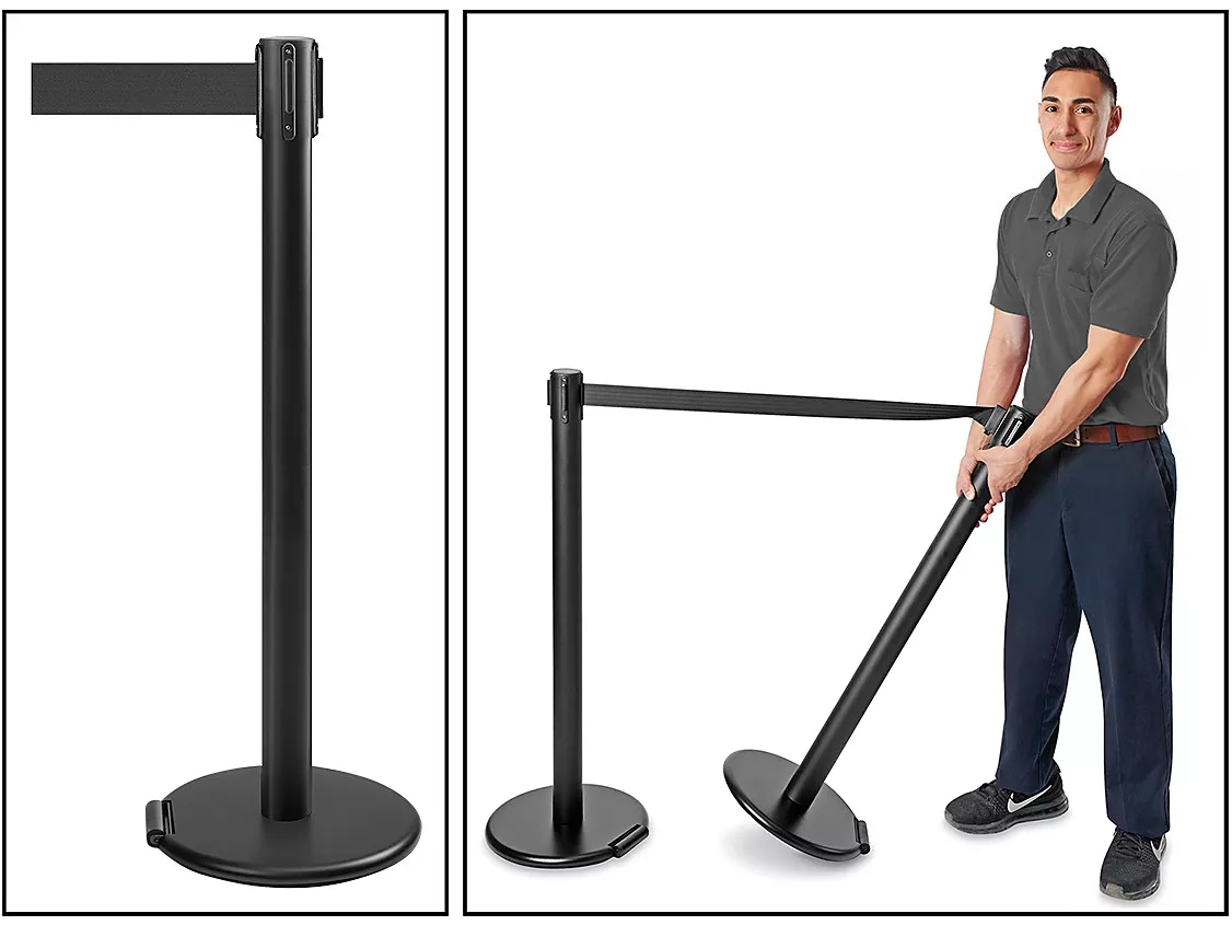 Reposition barriers at crowded airports, museums and stadiums. Rolls easily on recessed wheel.