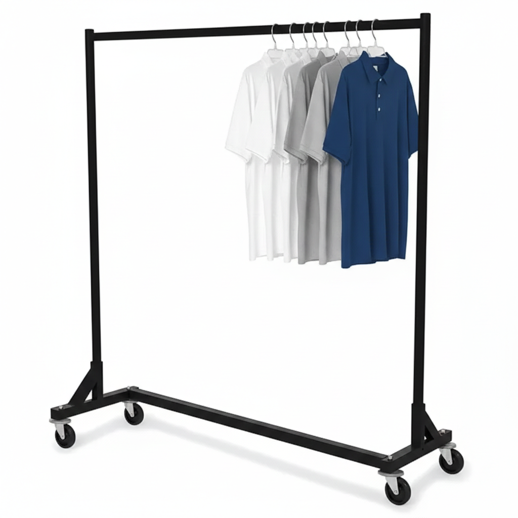 Professional duty garment rack for department stores and laundries.