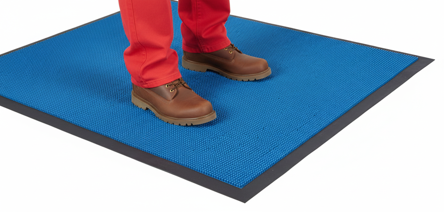 Hundreds of tough, flexible rubber fingers sweep shoes clean of snow, grit and dirt. Debris stays trapped below walking surface. The perfect all-weather mat. Stays flexible in sub-zero temperatures. No-trip beveled edges.