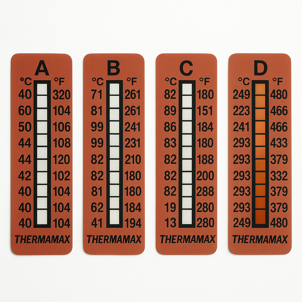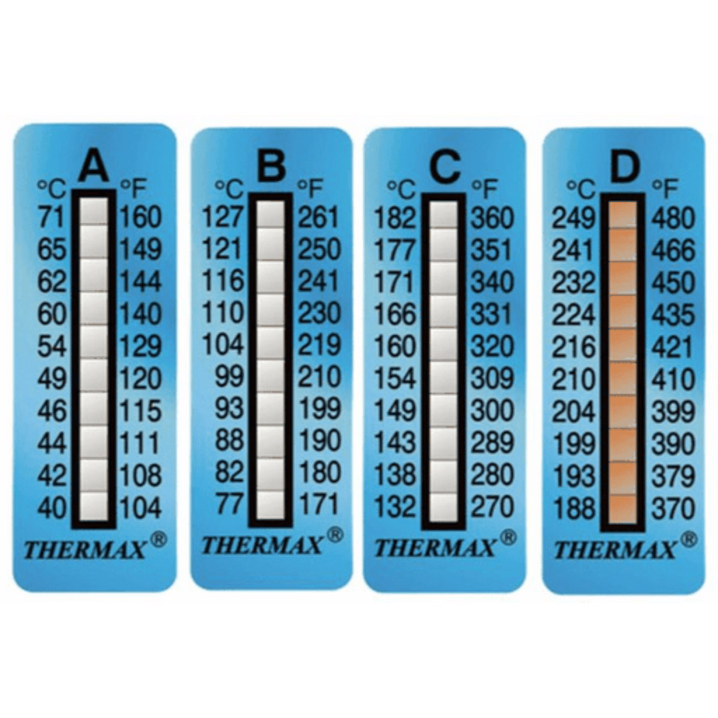 Irreversible Temperature Sensitive Strips provide a tamper proof display of temperature achievement, especially if an indicator has been exposed to a temperature over its rating.