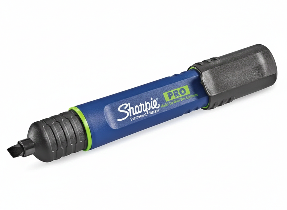 Long-lasting 1/4″ wide chisel-tip marker stands up to hard use. Permanently marks wet, oily, smooth or abrasive surfaces. Ergonomic handle. Stronger, improved formula.