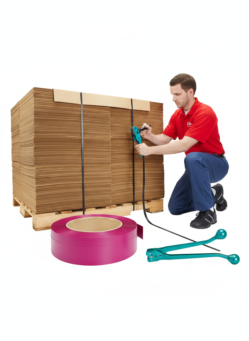 Strong polypropylene strapping is 1/2 the weight of steel strapping. Easier, safer and less expensive to use. Smooth surface. Virgin resin.