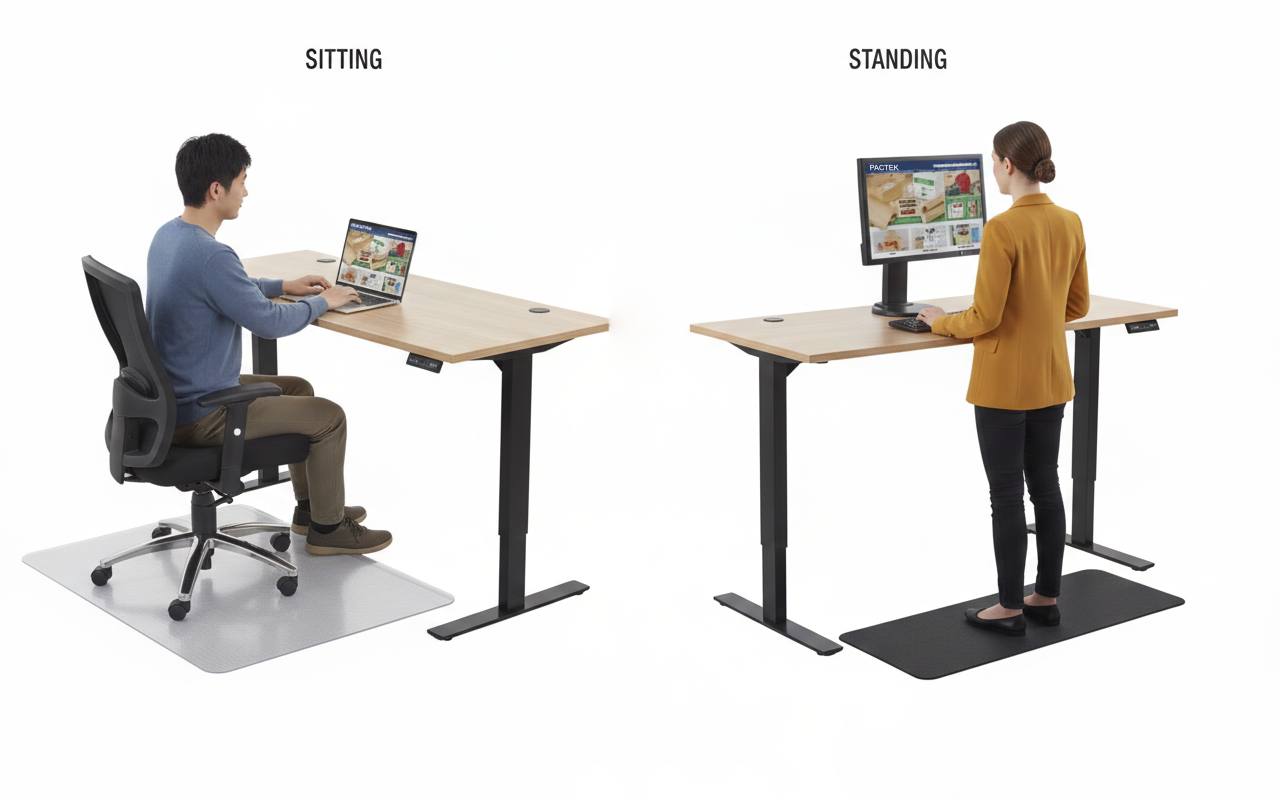 Transforms from a chair mat to a comfortable standing mat with a quick flip of your hand.
