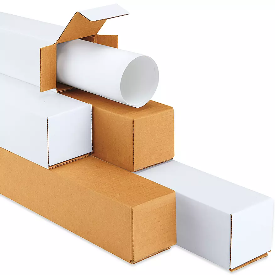 Recommended for storing or mailing documents, maps and blueprints. Ships and stores flat – Saves warehouse space. Unique square shape makes inserting and removing easy. Tough 200 lb. test corrugated. Locking tabs – No need for tape.