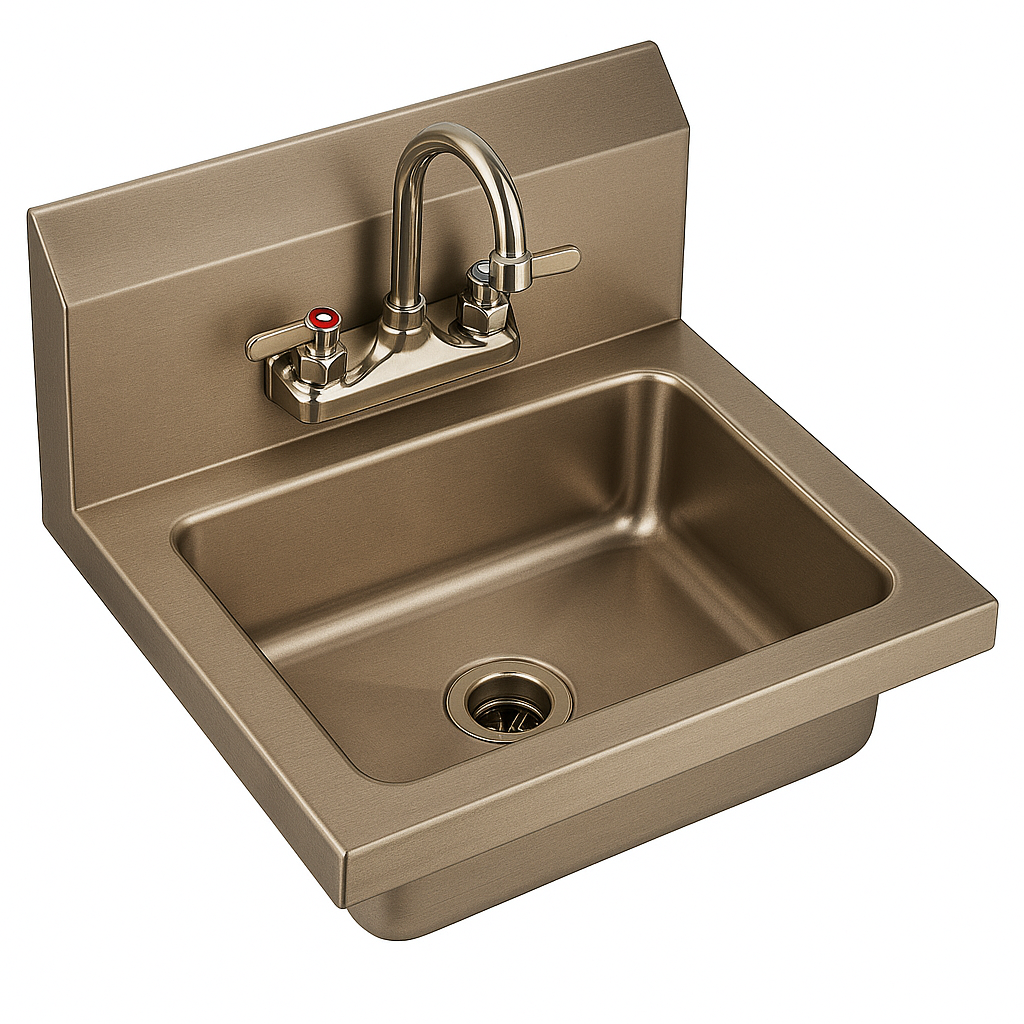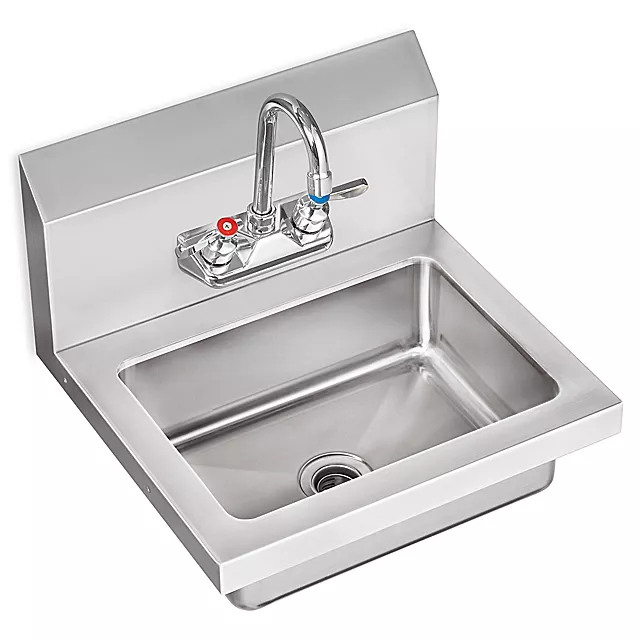 Keep your restaurant, bar or café up to code. Compact size easily mounts to wall. Mounting brackets included. All stainless steel. Type 304 bowl. 8″ backsplash. Includes 4″ gooseneck swivel faucet. Chrome finish. NSF Certified.