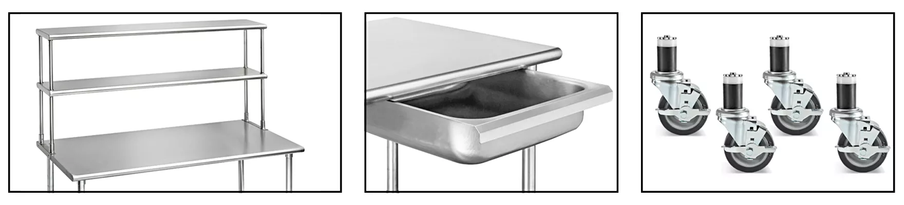Upgrade your worktable. Easily add on accessories to fit your commercial kitchen’s needs.